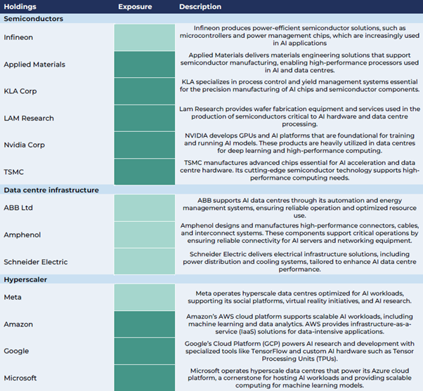 * Artificial Intelligence Basket is a selection of stocks that Guinness Global Investors believe is most exposed to the AI theme.