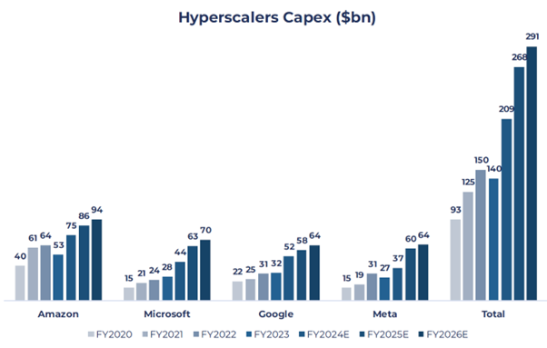 KLA, fabricant d’équipements semi-conducteurs, a également chuté (-6,3 %) en raison des craintes sur la demande en puces avancées, mais a terminé le mois en forte hausse (+17,2 %) grâce à des résultats solides. Schneider Electric (-9,7 %) et ABB (-5,4 %) ont subi un impact ponctuel lié à leur exposition aux centres de données, mais restent bien positionnés pour profiter de leur expansion continue.