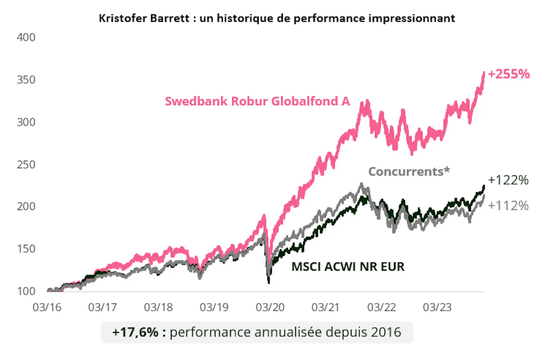 *Fonds EAA Actions mondiales de croissance à grande capitalisation. Kristofer Barrett a géré le fonds Swedbank Robur Global du 31/03/2016 au 31/01/2024.