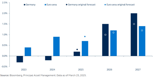 Cependant, le plan de relance allemand devrait stimuler la croissance du PIB et soutenir la dynamique de la défense européenne, qui prévoit de mobilier jusqu’à 800 milliards d’euros d’ici 2030.
