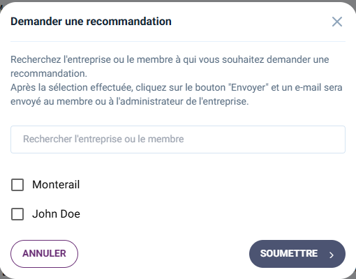 et recherchez le membre ou l'entreprise que vous souhaitez solliciter.